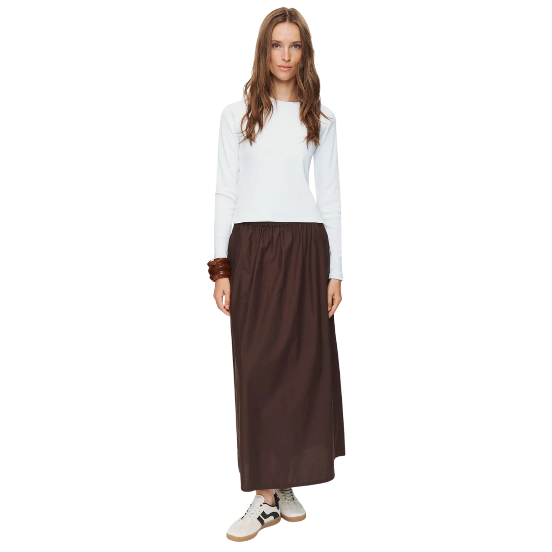 Das Cropped Longsleeve in Black Coffee besticht durch seine tiefe, dunkle Braun-Schwarz-Farbe und das unifarbene, schlichte Design. Mit figurnahem Slim Fit, Rundhalsausschnitt und langen Ärmeln wirkt es elegant und clean. Es lässt sich ideal mit High-Waist-Jeans, Hosen oder Röcken kombinieren und ist ein vielseitiges Basic für den Alltag oder stylische, moderne Outfits.